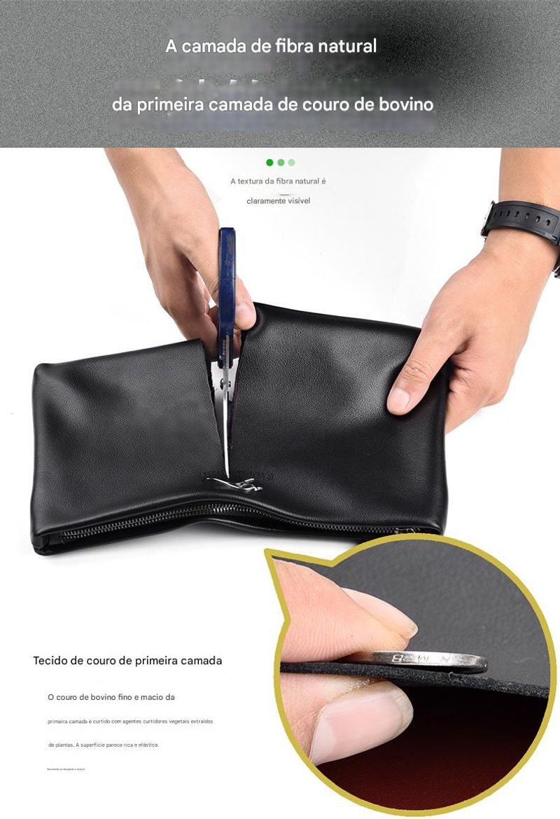 Bolsa de mão masculina e bolsa sob o braço em couro de primeira qualidade, confeccionada em couro genuíno. Com uma capacidade generosa, é perfeita para ocasiões comerciais. Com textura suave e refinada, oferece uma sensação macia ao toque. Resistente ao desgaste e com um design elegante e moderno, combina o estilo e a funcionalidade.
